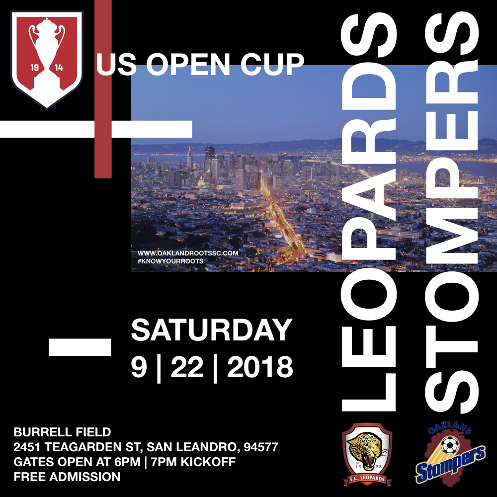 Our Lamar Hunt U.S. Open Cup game will be on Saturday, September 22nd at Burrell Field (2451 Teagarden St) in San Leandro, CA. Kickoff is at 7pm vs the Oakland Stompers. Please come out to support the growth of soccer in our community!